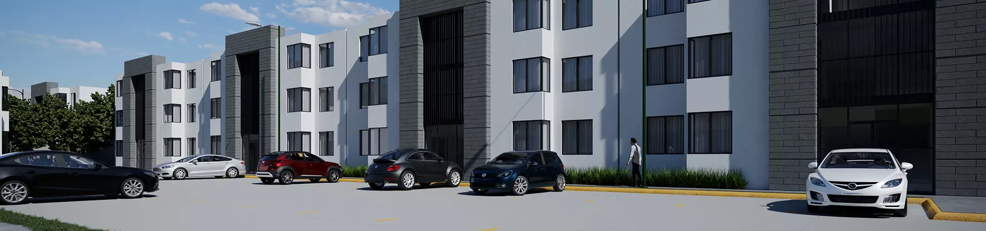 Nuevo concepto diseñado para ti. Contamos con 2 condominios que constan de 5 edificios y cada uno tiene 28 departamentos. De los cuáles 4 edificios cuentan con 3 niveles y 1 edificio con 2 niveles. Todos los departamentos miden 64.64 m2, con 2 recámaras y 1 cajón de estacionamiento.